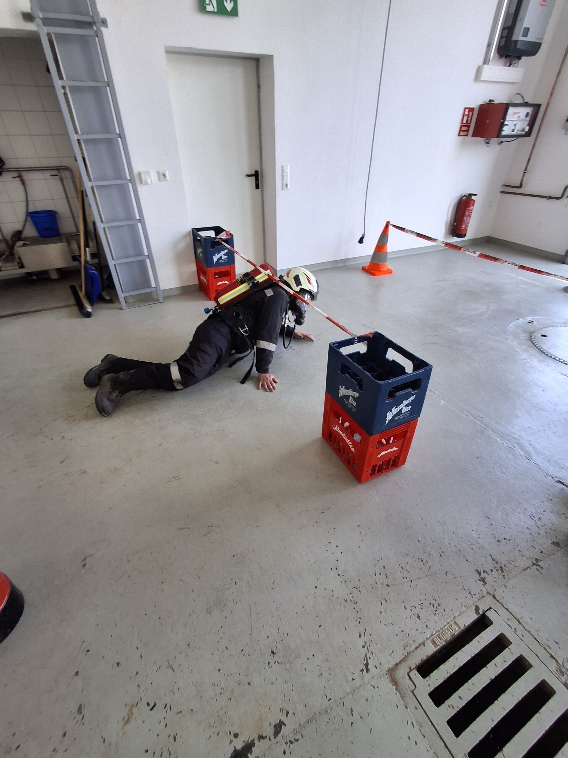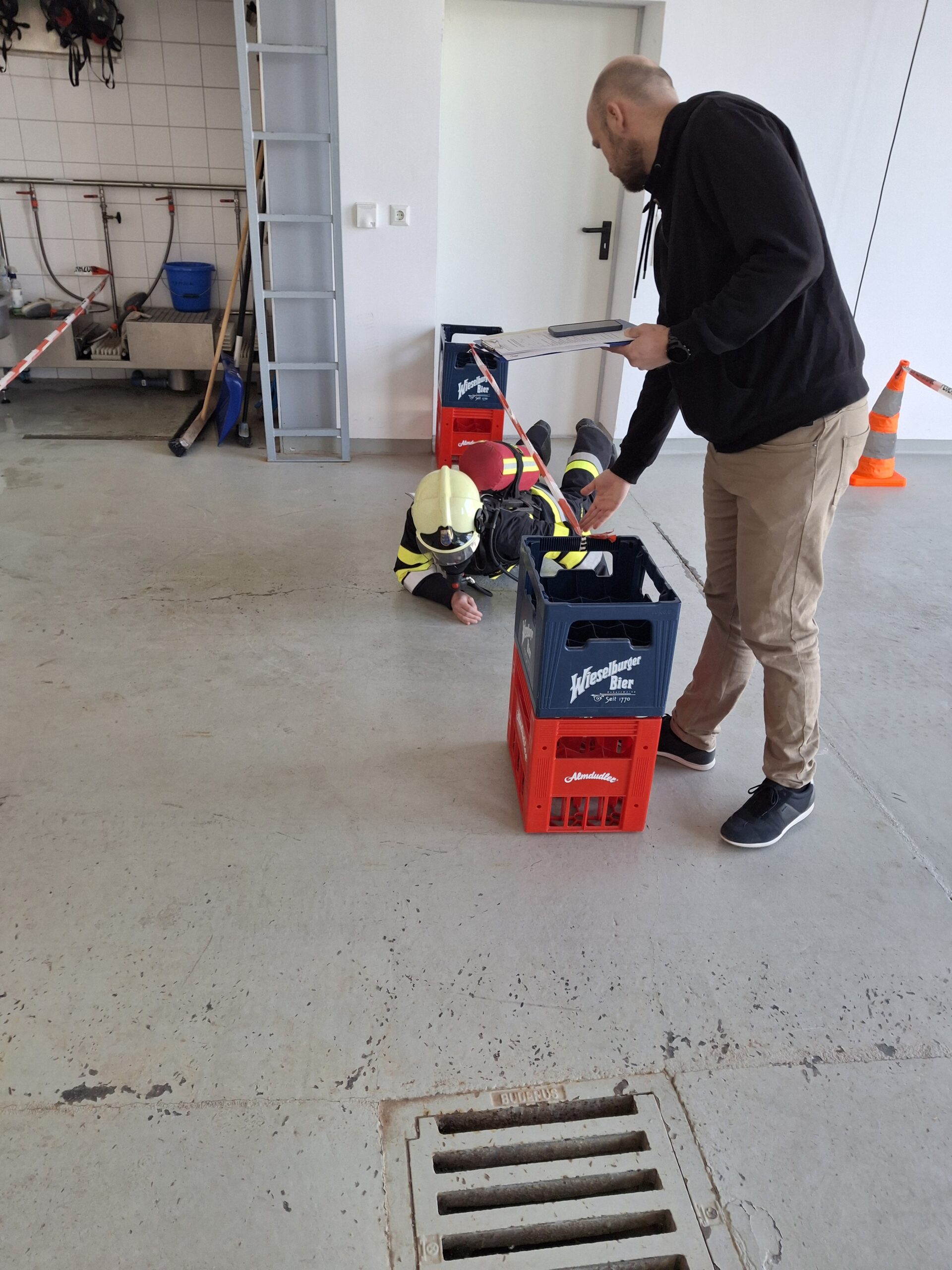 Station 1: 100 m Gehen mit zwei Kanistern ca. 16kg, danach 100 m ohne Kanister