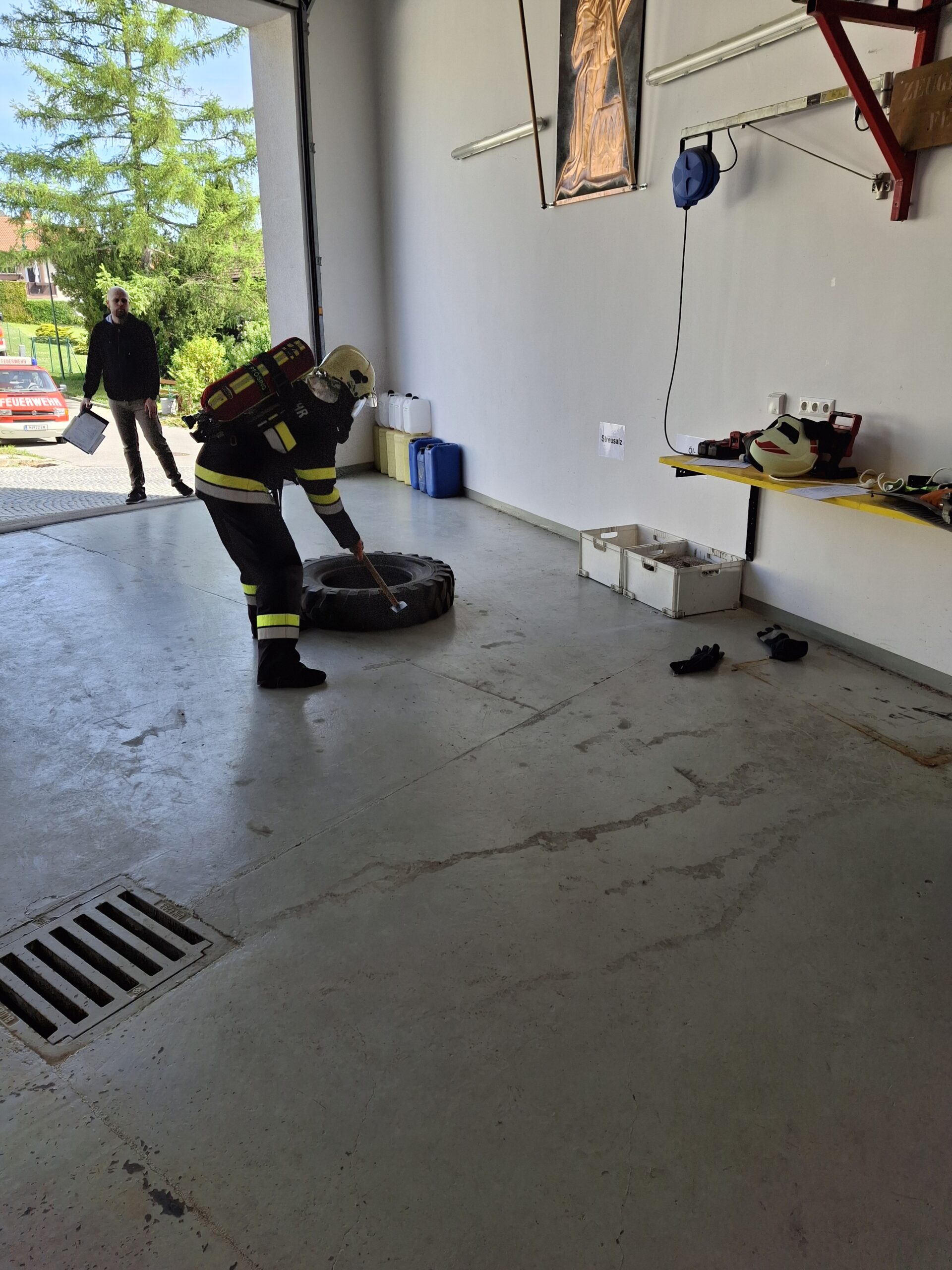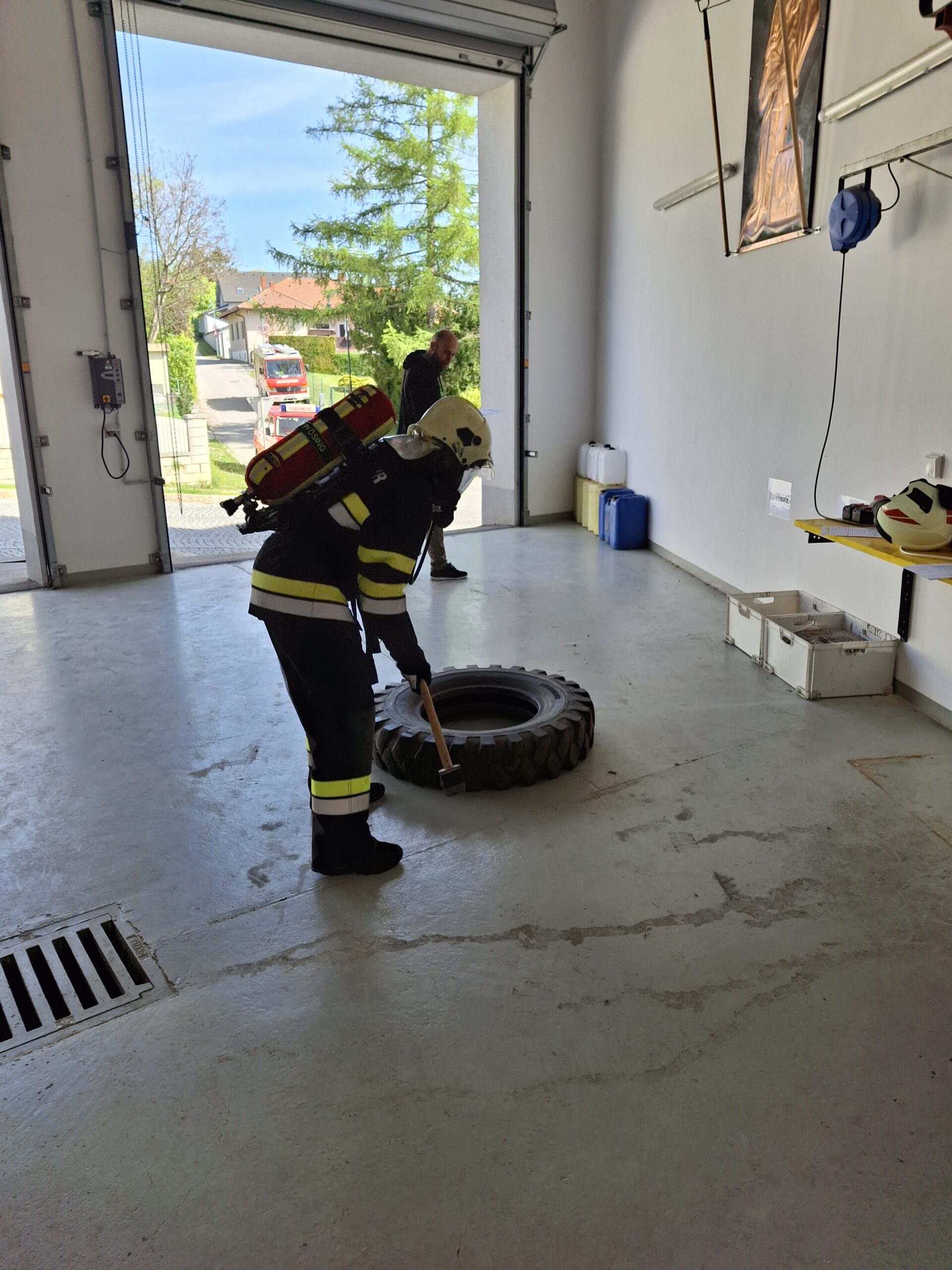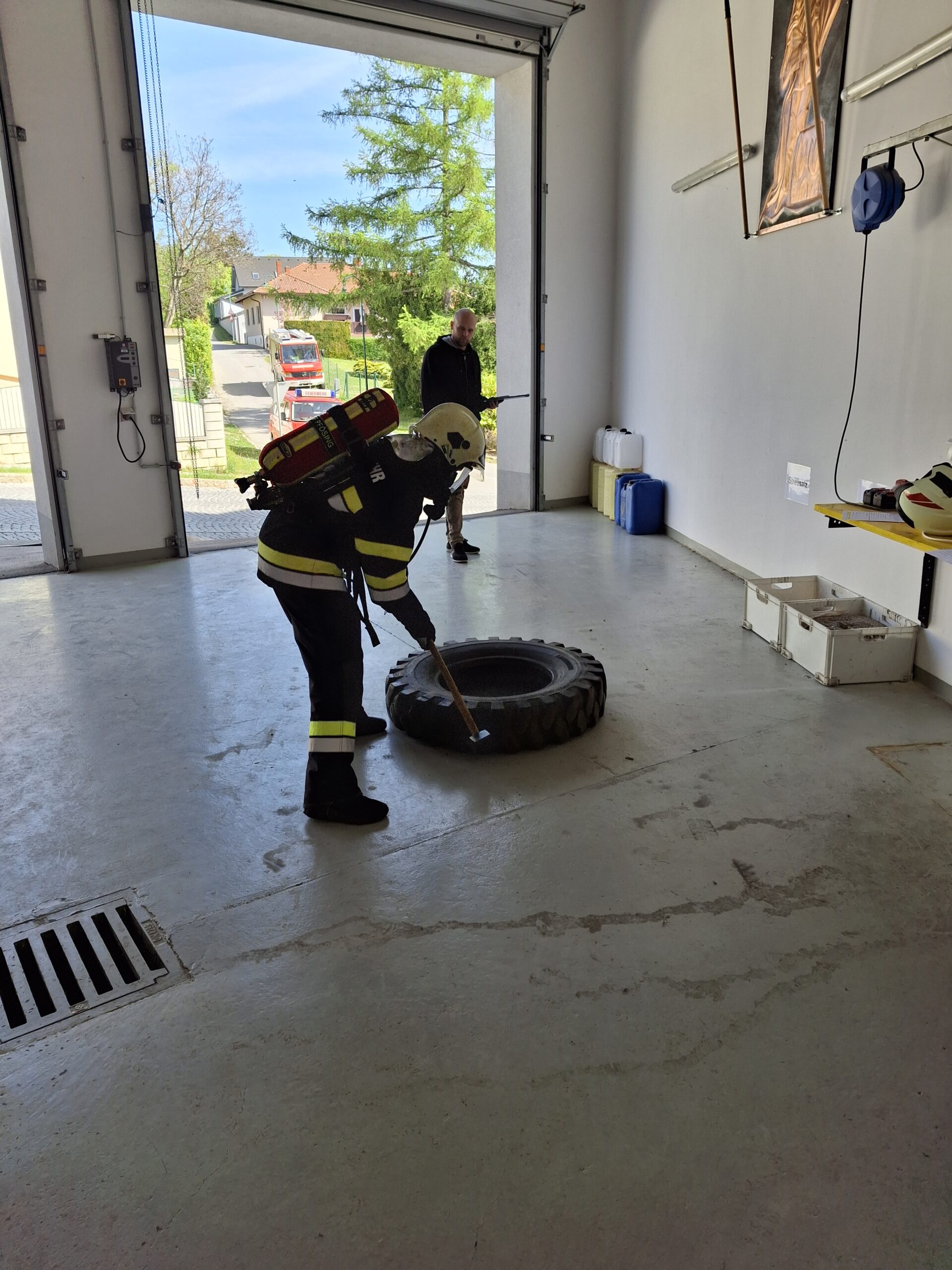 Am 25.04.2026 fand der Finnentest der FF-Pfösing statt. Ziel dieses Tests ist die Tauglichkeit der Atemgeräteschutzträger.